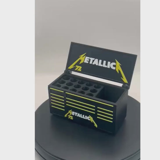 Heavy Metal Toolbox Desk Organizer | 3D Printed Rock-Inspired Pen Holder | Garage & Man Cave Decor