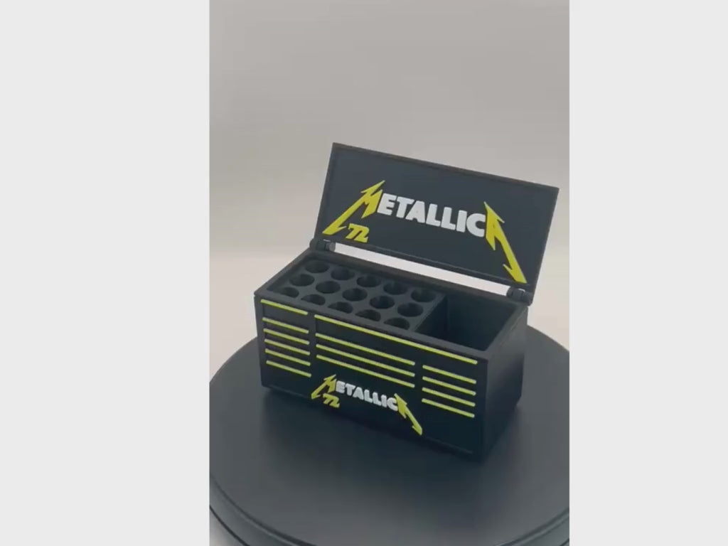 Bring heavy metal style into your workspace with this handmade 3D-printed desk organizer inspired by classic metal toolboxes and rock culture.