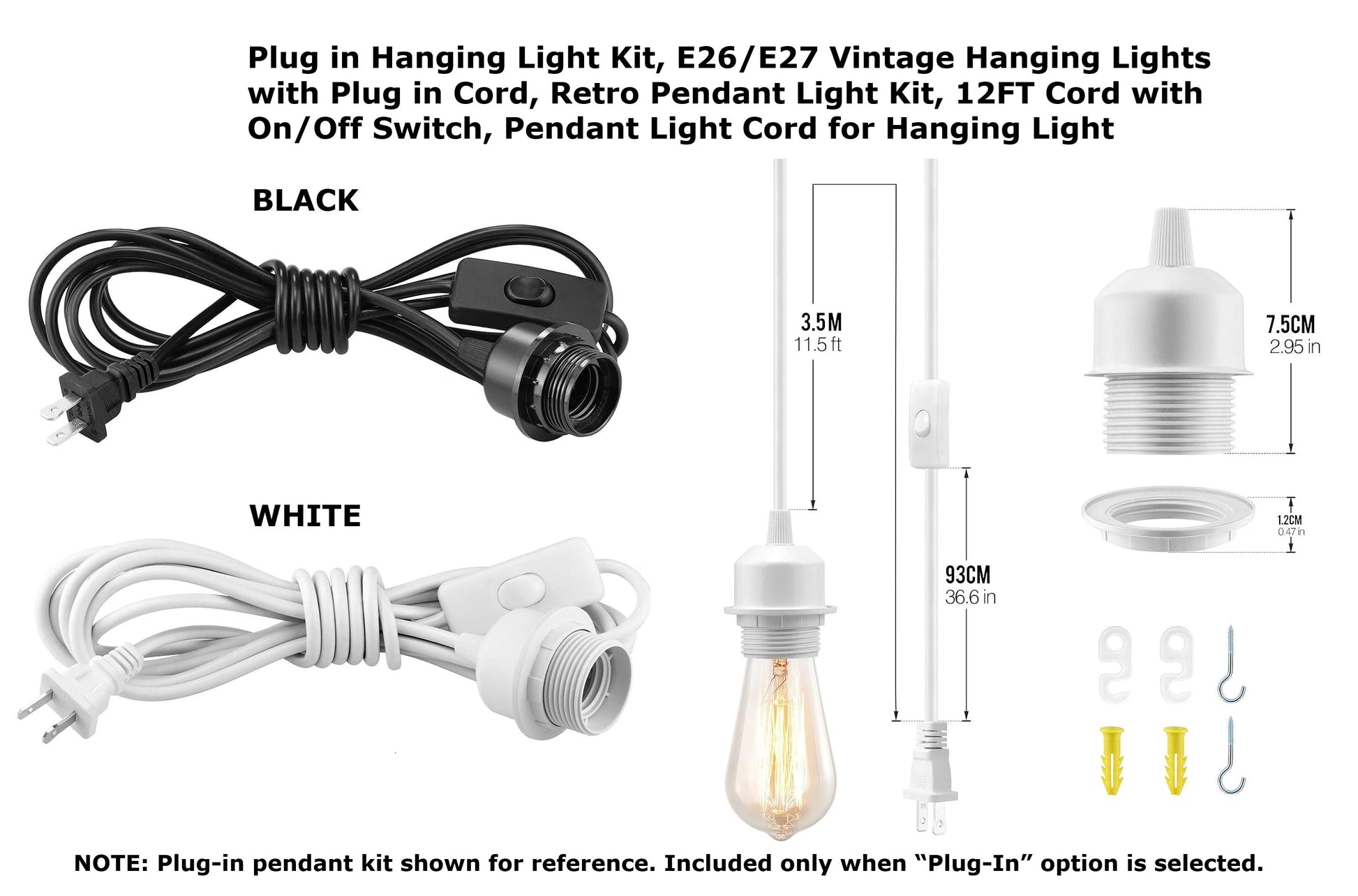 • 12 ft (3.6 m) plug-in pendant cord